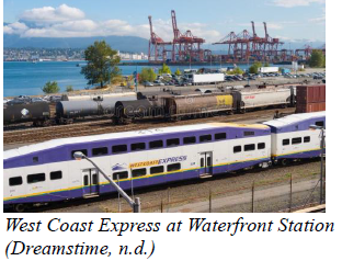 Socio-Economic Analysis of Passenger Rail Stations along the West Coast Express (WCE) in Metro Vancouver assesses the effects of land use, accessibility, economic, environmental and rider-perception variables on the performance of passenger rail stations. The study focuses on 5 representative stations - Waterfront, Port Coquitlam, Maple Meadows, Pitt Meadows, and Mission City and uses Geographic Information System (GIS) buffer mapping with statistical regression to establish the forces that drive ridership and the pervasive effects of rail service.