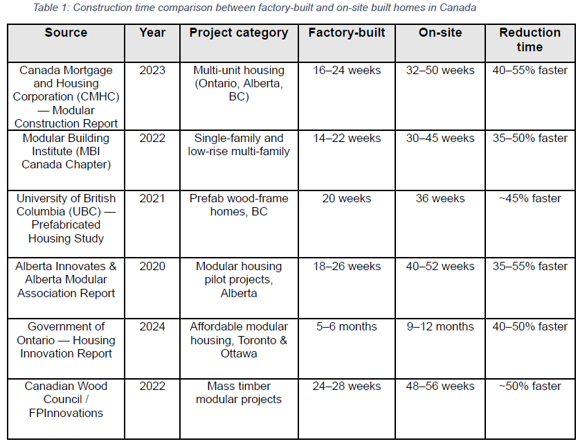 In provinces such as Alberta and Ontario, modular construction projects have demonstrated completion times under 7 months compared to 12–18 months for traditional builds, even accounting for permitting and foundation work. These operational efficiencies directly support affordability, enabling quicker occupancy, reduced financing costs, and lower long-term ownership expenses.